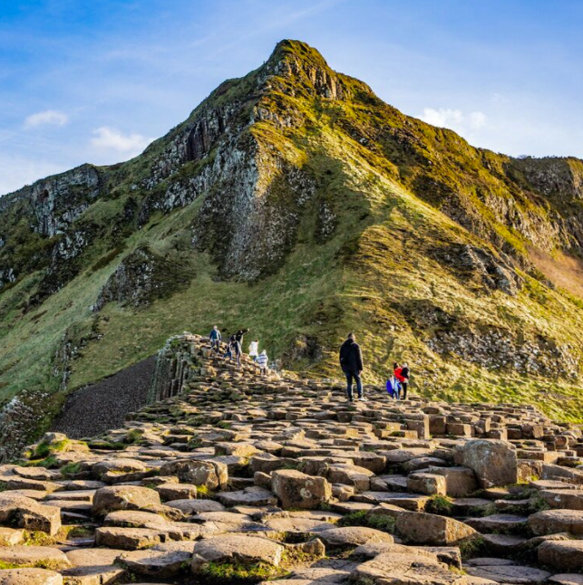 One day, Fionn heard there was another giant, Benandonner who lived across the narrow, storm- tossed waters that separate the north coast of Ireland from the isle of Staffa in Scotland. Giant etiquette demanded that he fight his Scottish rival to see who was stronger, so he set to and built a causeway made of interlocking hexagonal stones, the Giants Causeway .