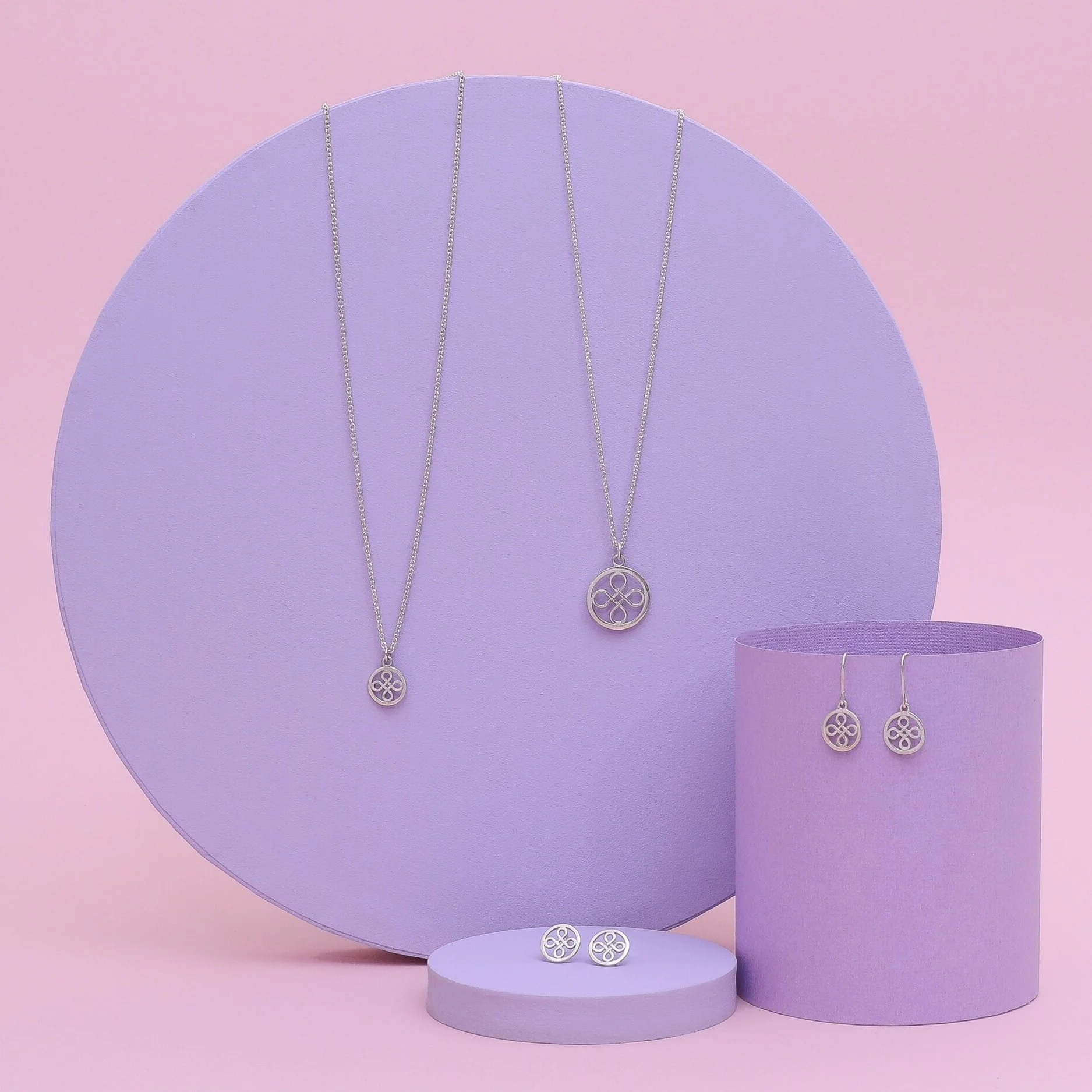 This Celtic pendant is available in two sizes (regular and petite) along with stud or drop earrings. You’ll find these and more in our Jewelry collection.