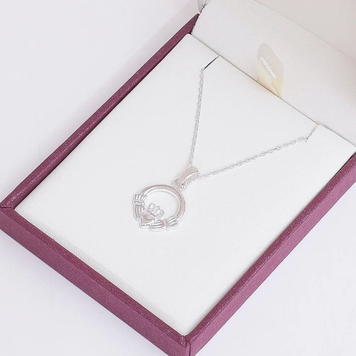 This pendant is the perfect match for the ring, it has the same powerful symbolism, “I give you my heart and crown it with my love”. Beautifully crafted by Irish hands and an Irish tradition through the ages