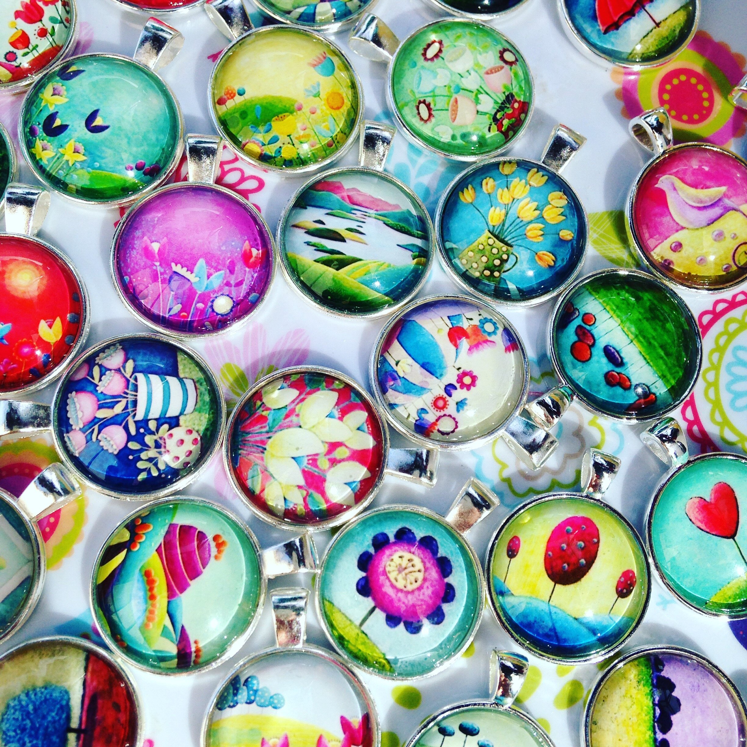 Amélie says that for as long as she can remember she always had a clear penchant for drawing, painting and all things creative. In college she studied Presentation Design, which led her to work in different jobs from window-dressing, to prop and set building for TV and theater. She even created floats for the parade of a big winter festival in Québec. Throughout it all she was creating or painting in her free time. When she settled in Ireland, she developed her art further and her work was represented in a few galleries. Then, she had the wonderful idea of using her own images on a different handmade product, and hence her distinctive line of jewelry was born. Each piece is like looking at a miniature work of art.